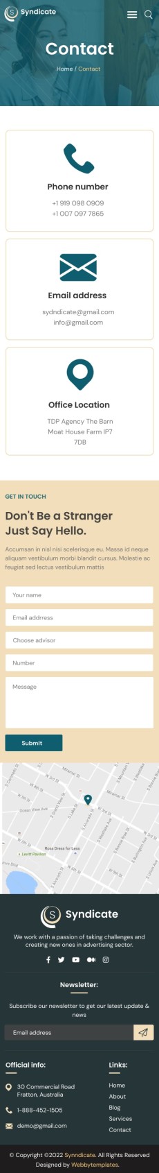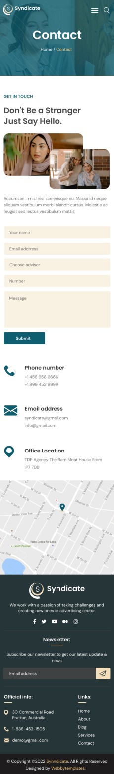 Syndicate business consulting website template Mobile Contact