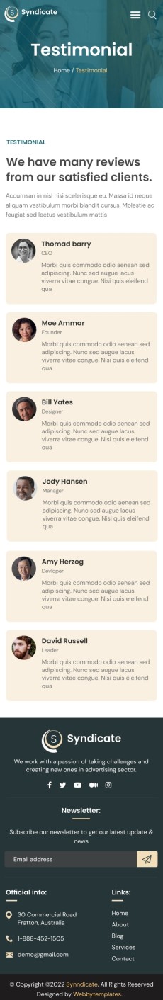 Syndicate business consulting website template Mobile Testimnial