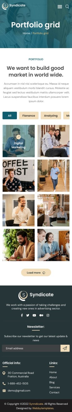 Syndicate business consulting website template Mobile Portfolio