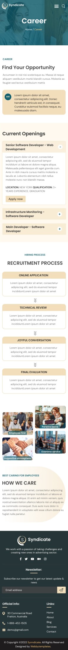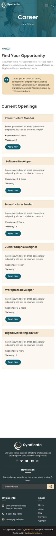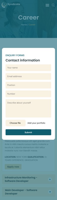 Syndicate business consulting website template Mobile Career apply form