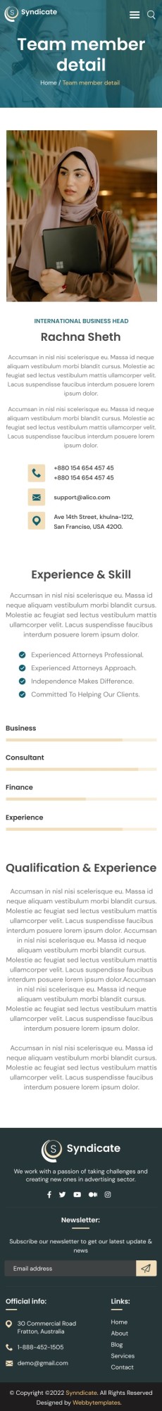 Syndicate business consulting website template Mobile Team detail