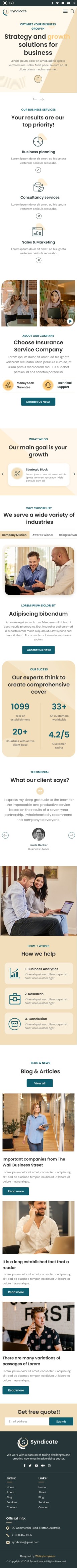 Syndicate business consulting website template Mobile service