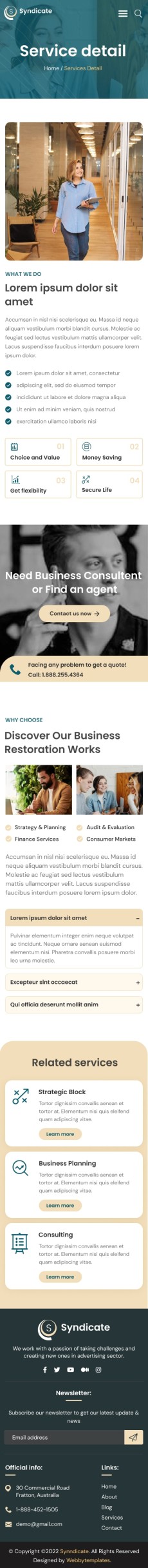 Syndicate business consulting website template Mobile service Detail