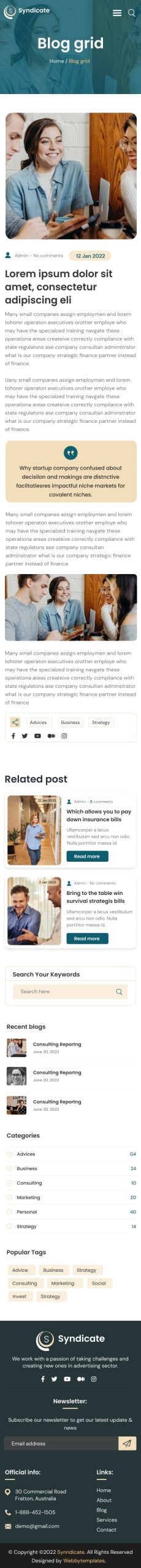 Syndicate business consulting website template Blog grid