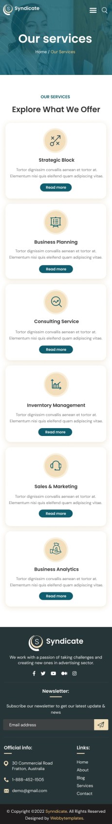 Syndicate business consulting website template Mobile Newsletter