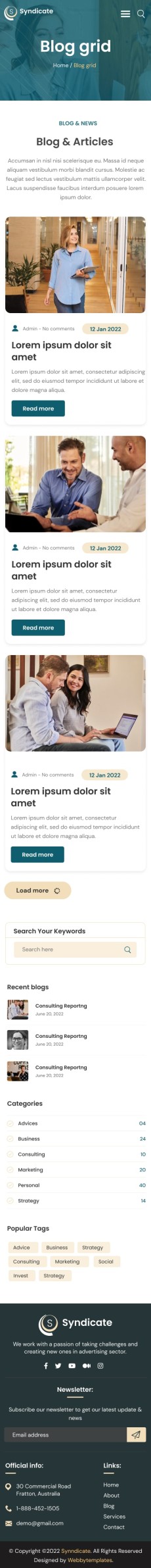 Syndicate business consulting website template Mobile Blog grid 1