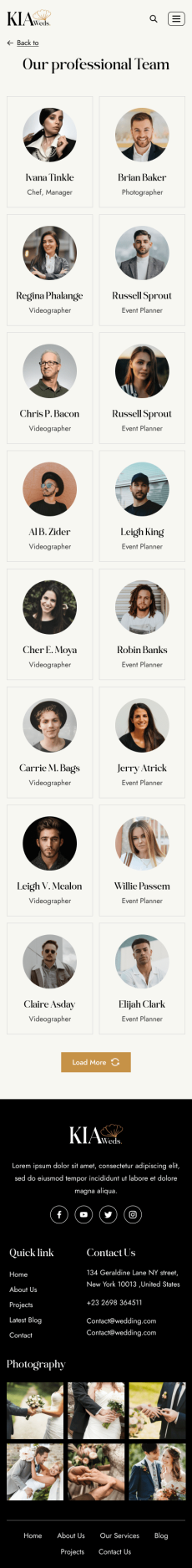 Kia weds wedding website template Mobile_Team Detail