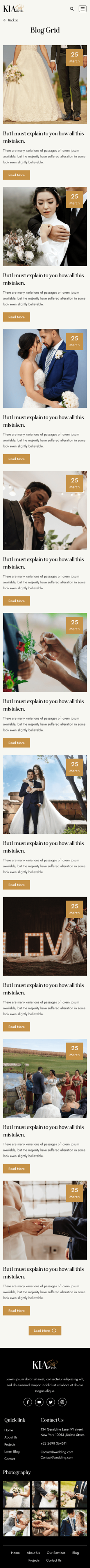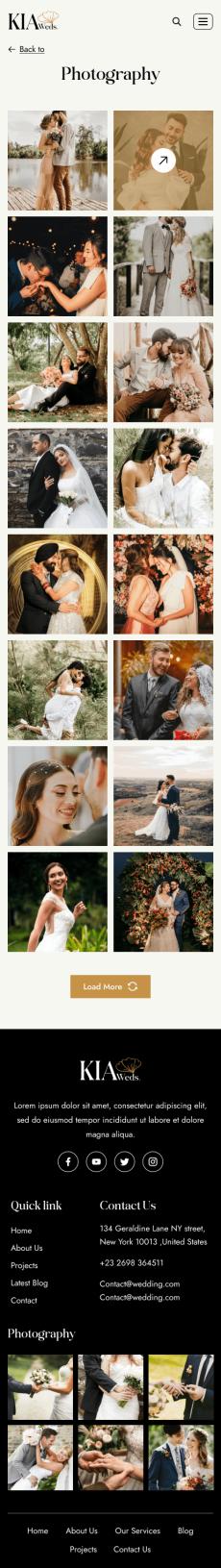 Kia weds wedding website template Mobile_Blog Grid