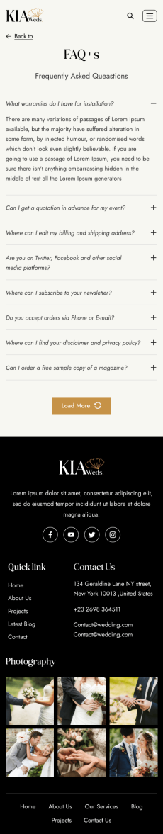 Kia weds wedding website template Mobile_FAQ's