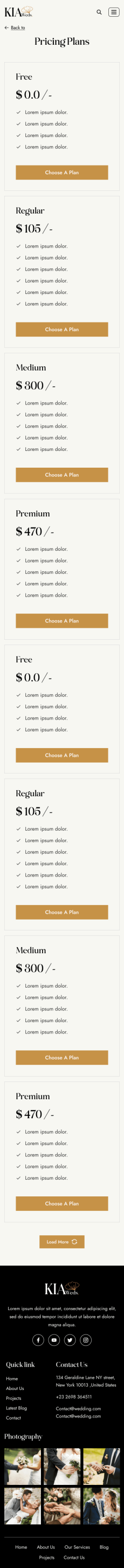 Kia weds wedding website template Mobile_Pricing Plans