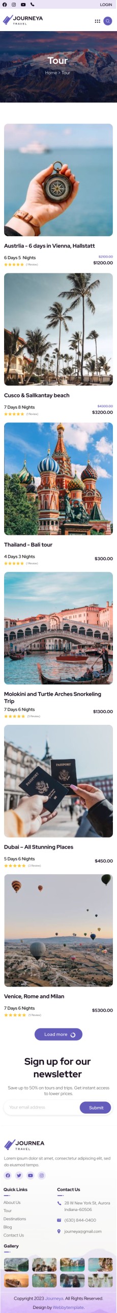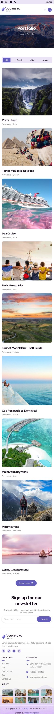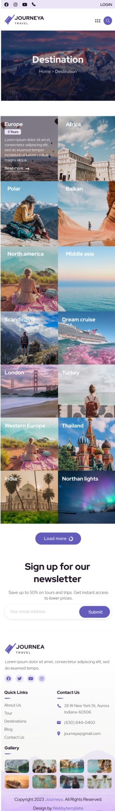 Journeya website template Mobile Destination