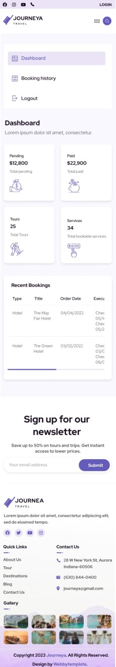 Journeya website template Mobile Booking history