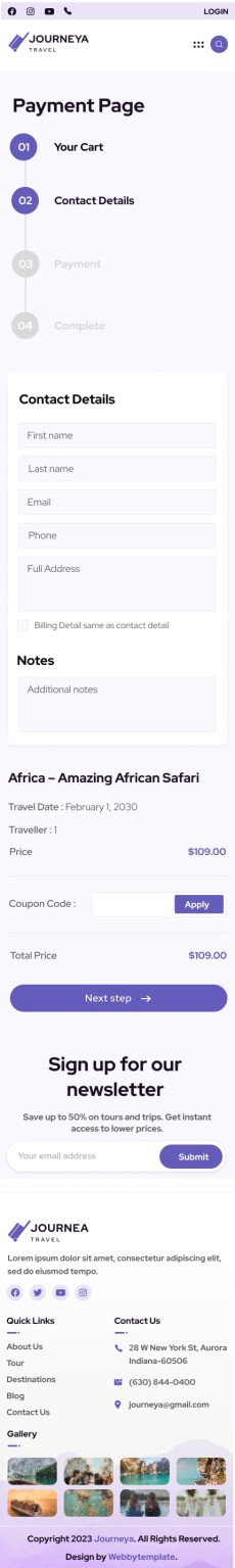 Journeya website template Mobile Complete or thank you