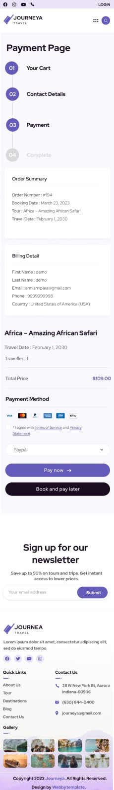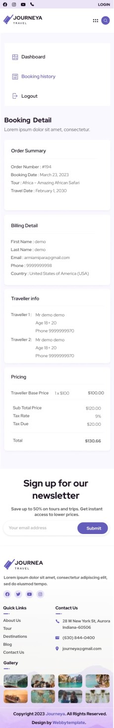 Journeya website template Mobile Booking detail