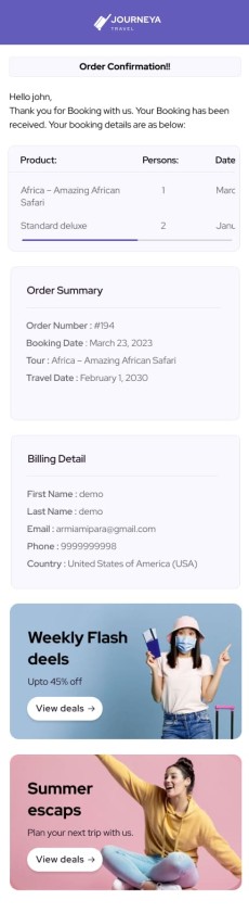 Journeya website template Mobile Thank you email