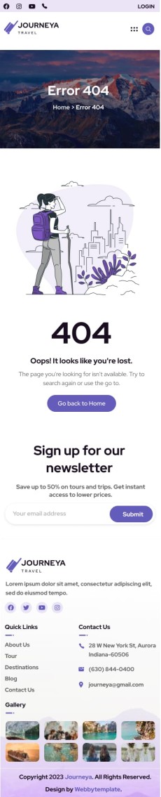 Journeya website template Mobile 404