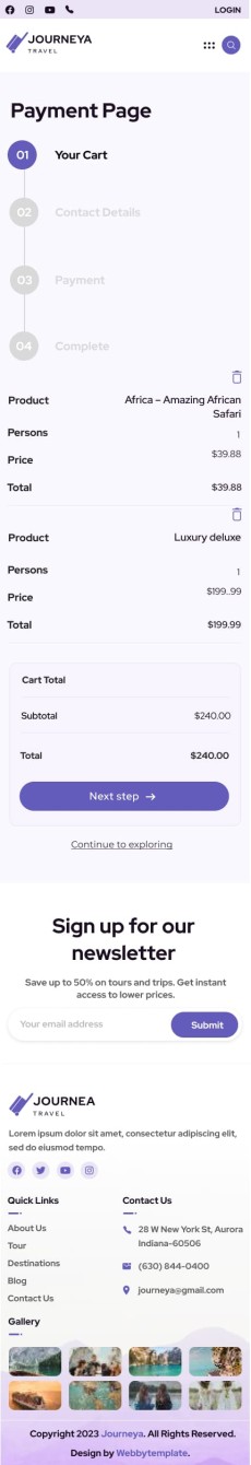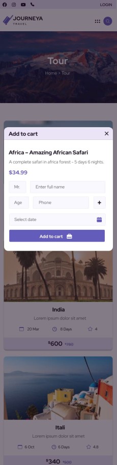 Journeya website template Mobile Booking Cart1