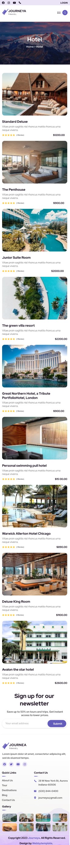 Journeya website template Mobile Hotels