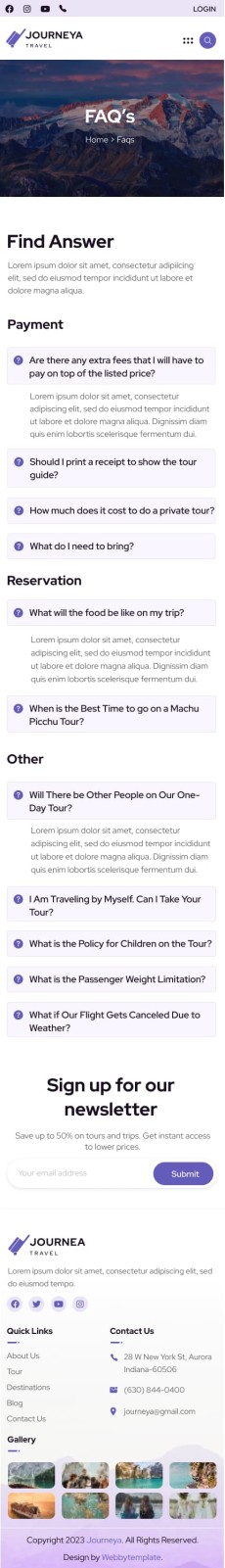 Journeya website template Mobile FAQ