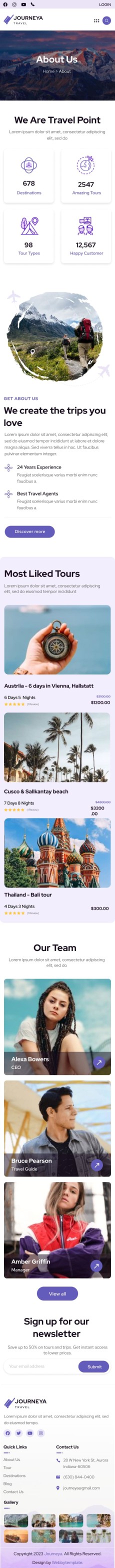 Journeya website template Mobile About