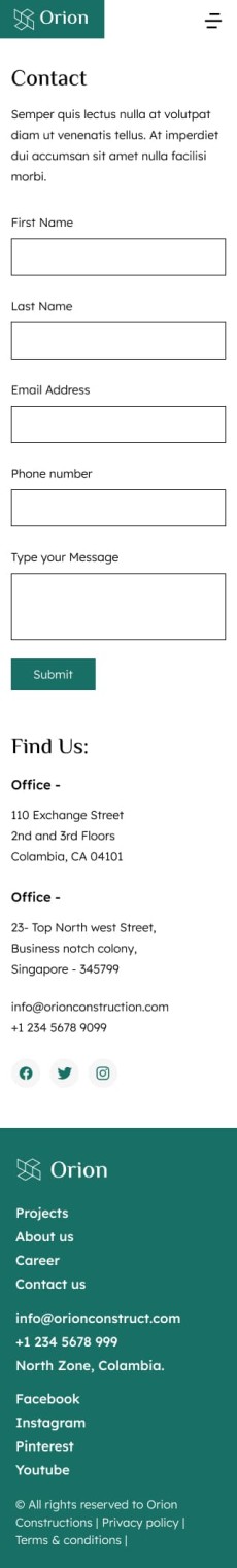 Orion construction website template Contact